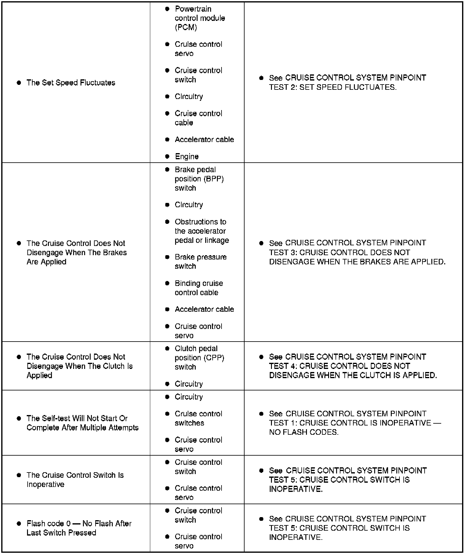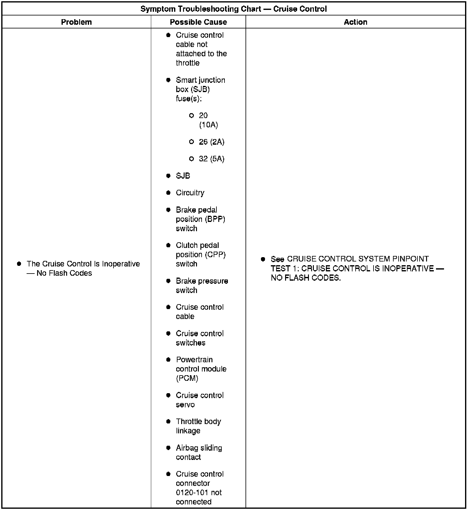 SYMPTOM TROUBLESHOOTING CHART - CRUISE CONTROL
