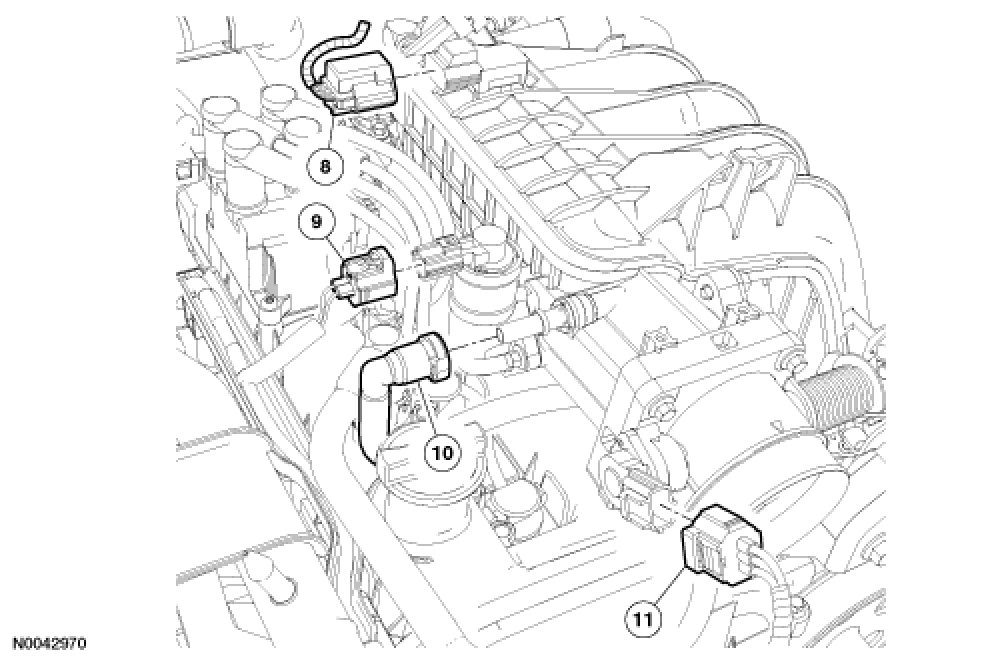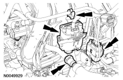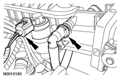 10. Connect the engine vacuum harness, brake booster hose and the crankcase breather hose. Connect the coolant hoses.