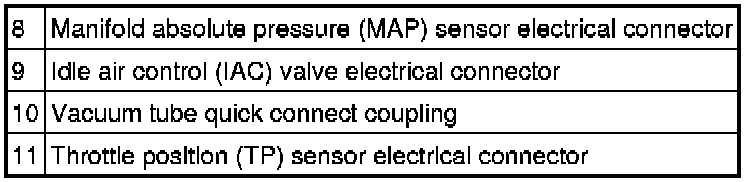 7. Disconnect the vacuum hose and the idle air control (IAC) valve electrical connector.