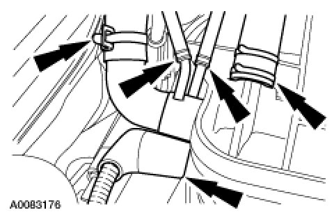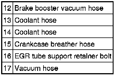 9. Disconnect the engine vacuum harness, brake booster hose and the crankcase breather hose. Disconnect the coolant hoses.