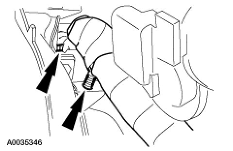 10. Disconnect two engine wiring harness pin-type retainers from the intake manifold.