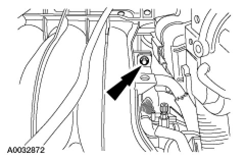 16. Remove the wiring harness pushpin from the bottom of the intake manifold.