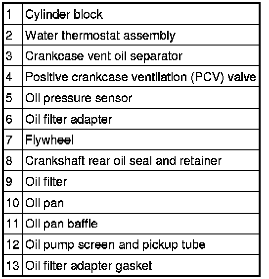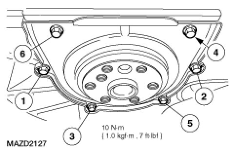1. Tighten the rear main oil seal bolts in the sequence shown.