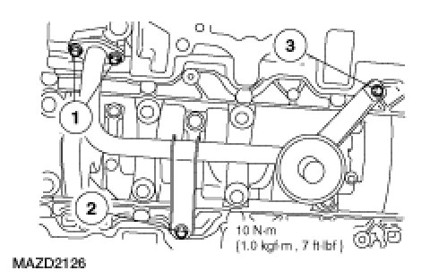 NOTE:Clean the sealing surface with a metal surface cleaner.Install a new oil pump pickup tube gasket and the pickup tube. Tighten the bolts in the sequence shown.