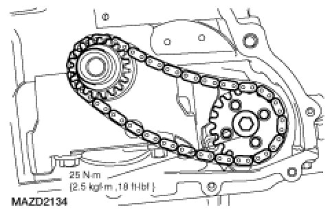 NOTE:The oil pump chain sprocket must be held in place.Tighten the oil pump sprocket bolt.