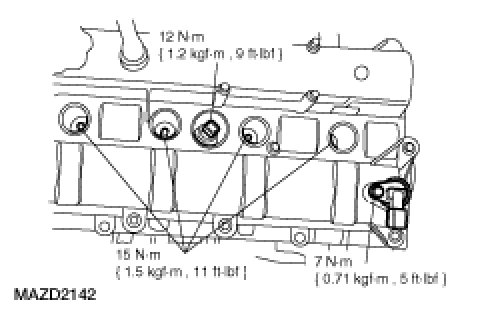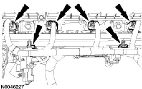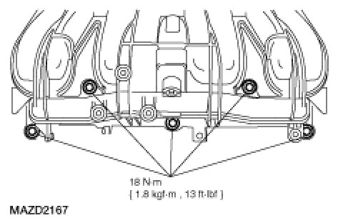 - Install the EGR tube bracket to the intake manifold.Tightening Torque:10 Nm {89 in-lb}