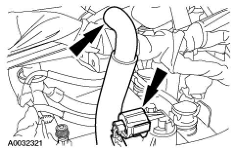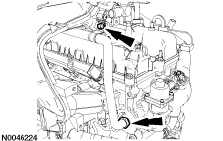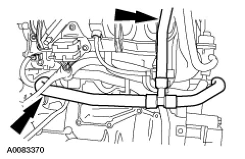1. Connect the coolant hose to the thermostat and coolant hose to the positive crankcase ventilation (PCV) fitting on the intake manifold.