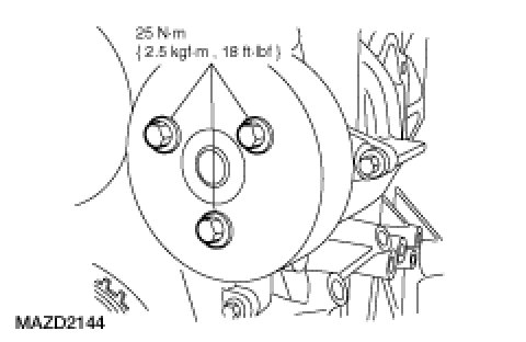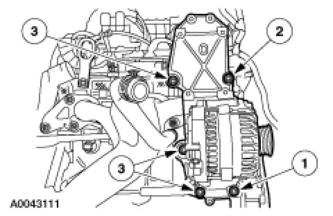 1. Position the front end accessory drive (FEAD) mounting bracket and install the bolts in the sequence shown in two stages.