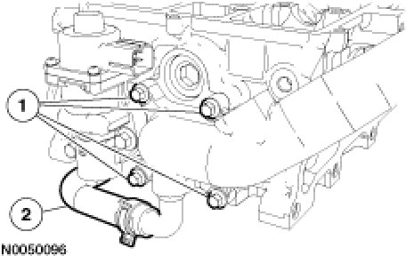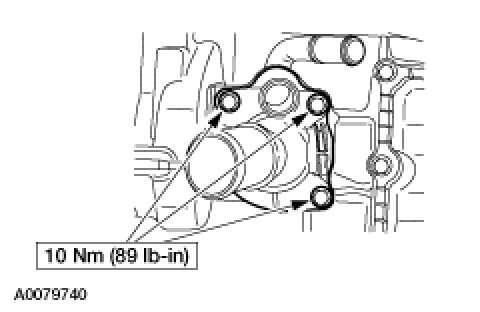 NOTE:Clean the thermostat housing gasket surface with metal surface cleaner.Install a new gasket and the thermostat housing.