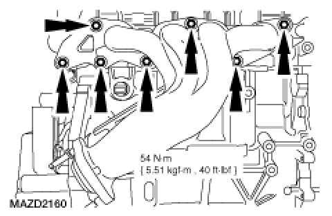 - Connect the EGR tube to the cylinder head.Tightening Torque:55 Nm {41 in-lb}