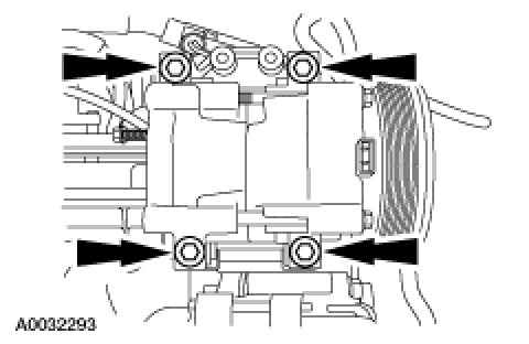 1. Remove the bolts and the A/C compressor.