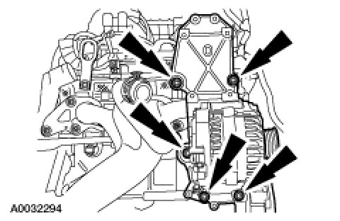 NOTE:The generator will be removed with the front end accessory drive (FEAD) mounting bracket.Remove the FEAD mounting bracket.