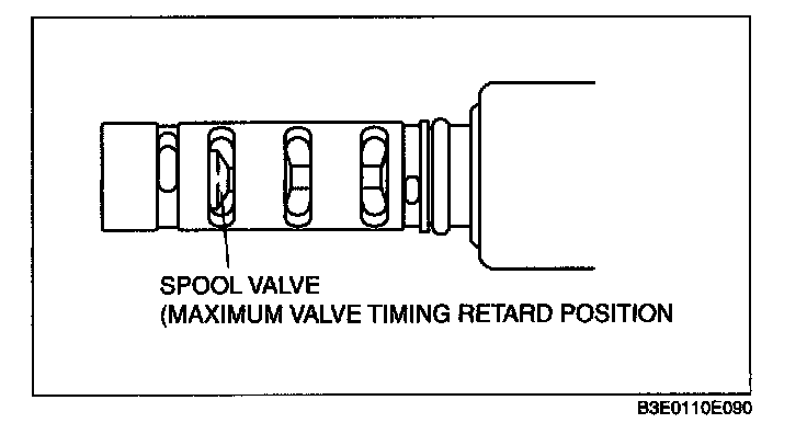 3. Verify that the spool valve in the oil control valve (OCV) is in the maximum valve timing retard position as indicated in the figure.
