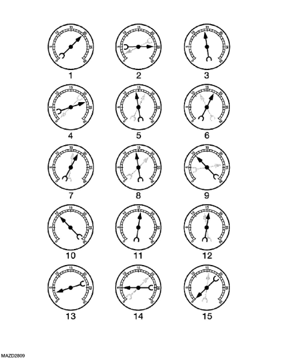 The following are potential gauge readings. Some are normal; others should be investigated further.