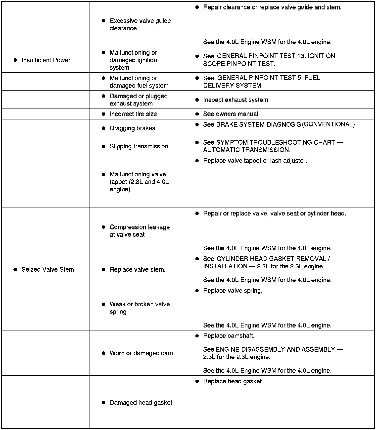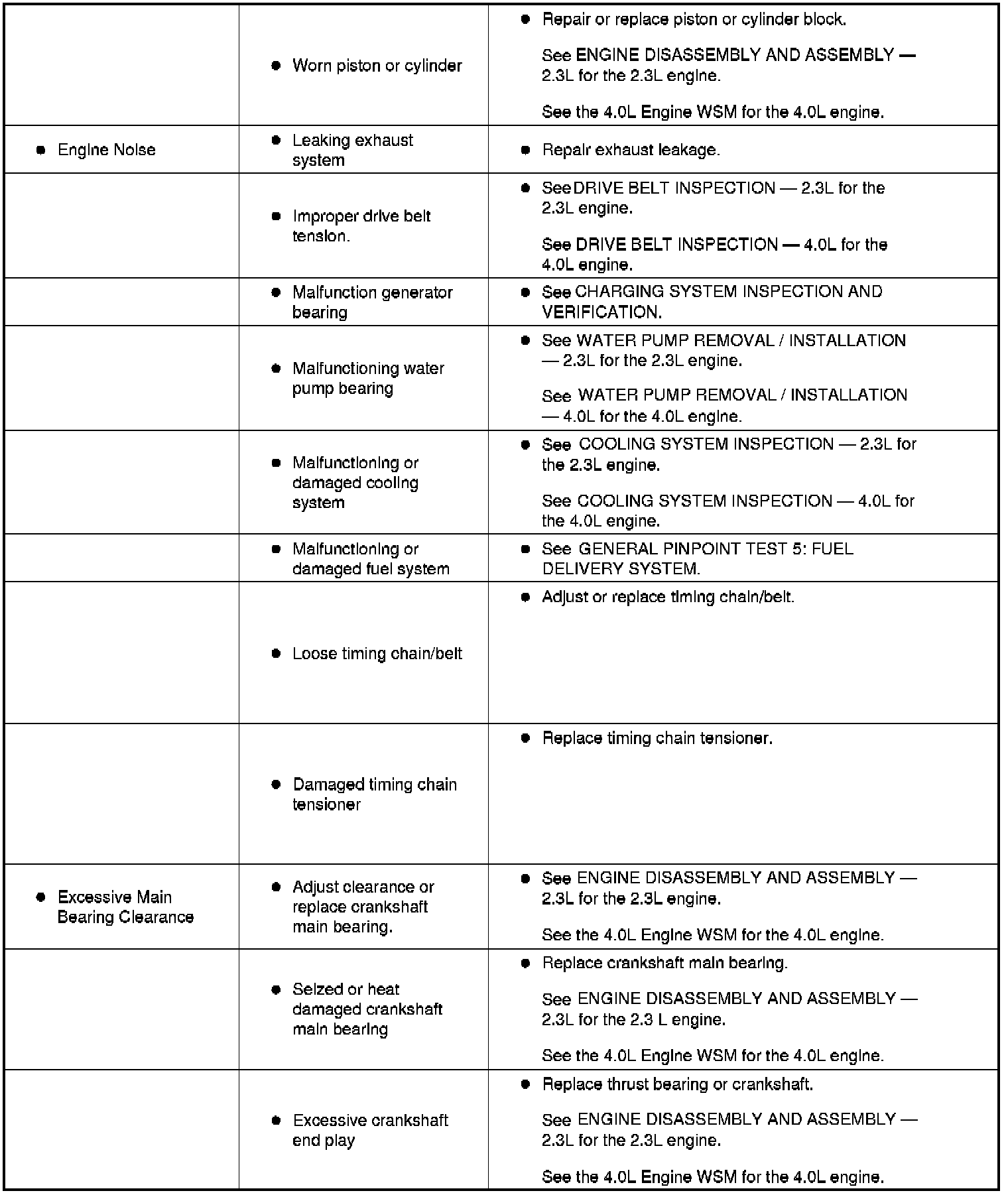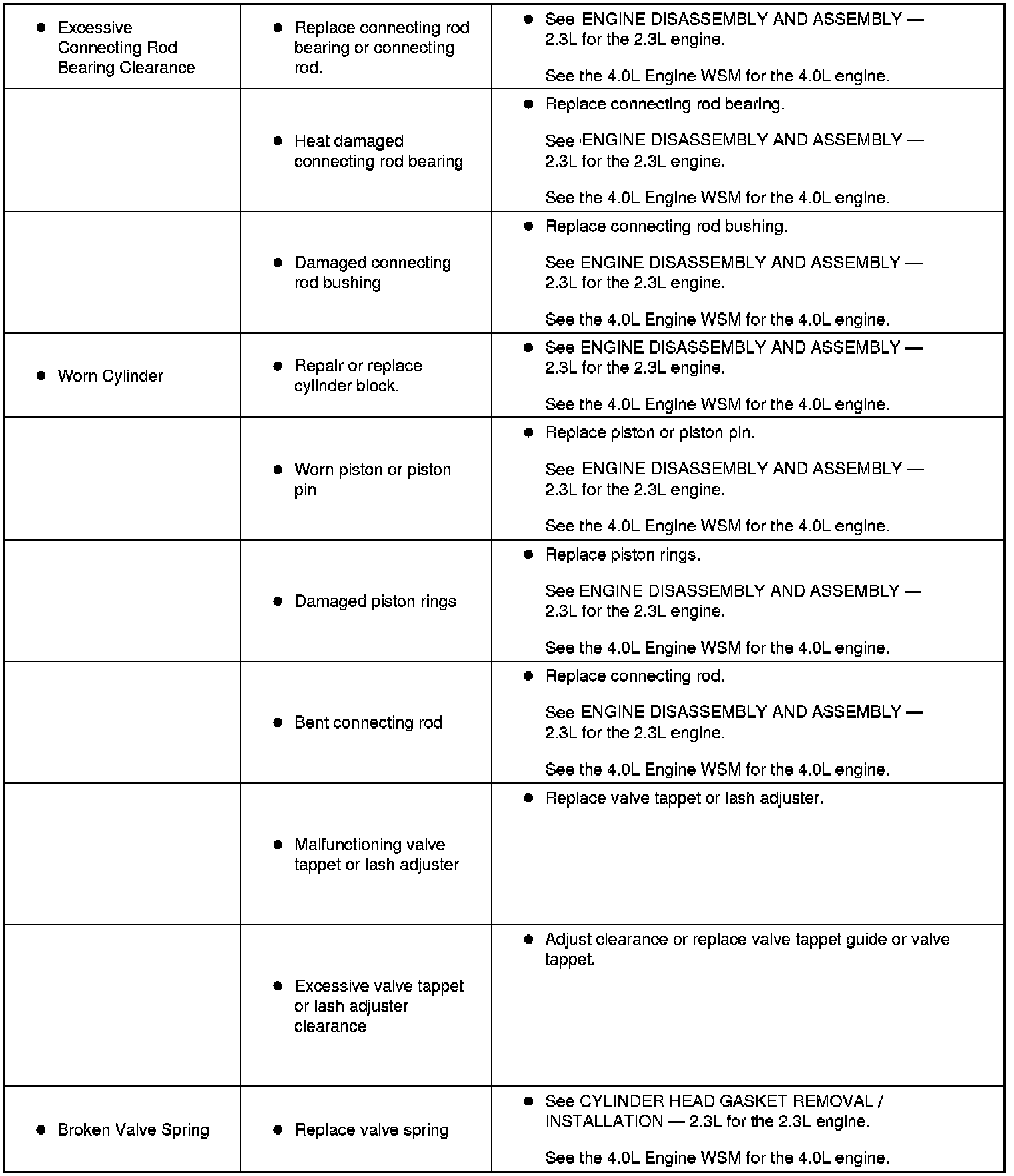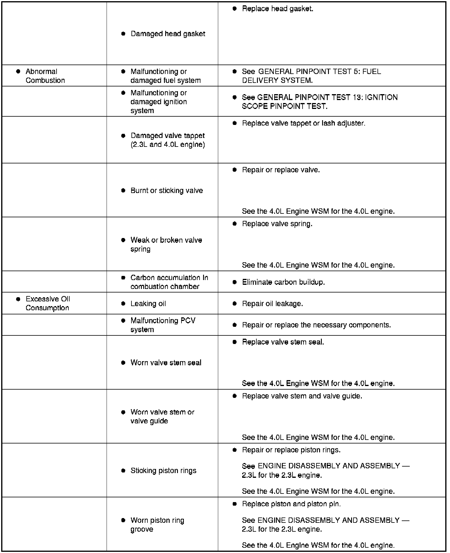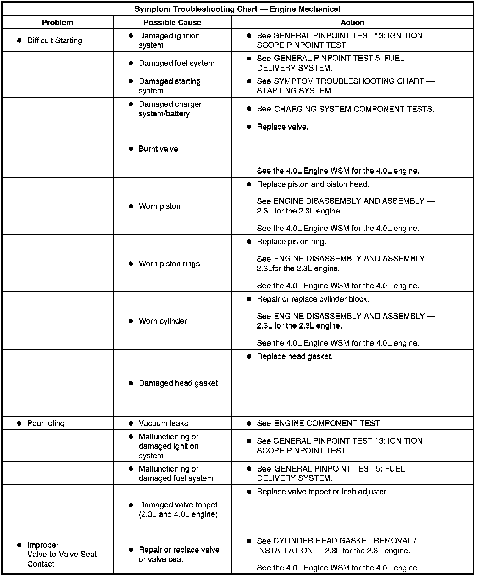 SYMPTOM TROUBLESHOOTING CHART - ENGINE MECHANICALSymptom Troubleshooting Chart (Part 1):