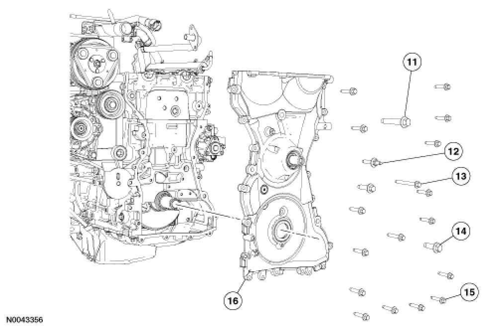 1. Install the front cover. Tighten the bolts in the sequence shown, to the following specifications: