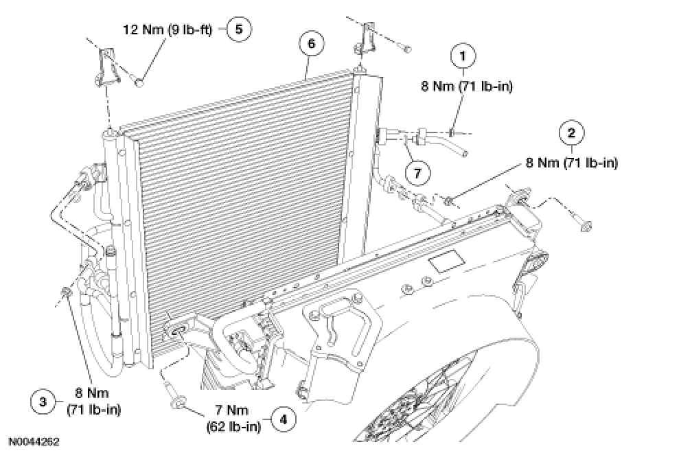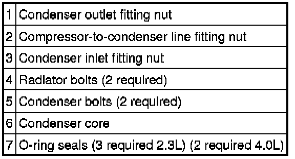 CAUTION:To prevent system contamination, whenever the condenser core is replaced, also replace the receiver/drier.