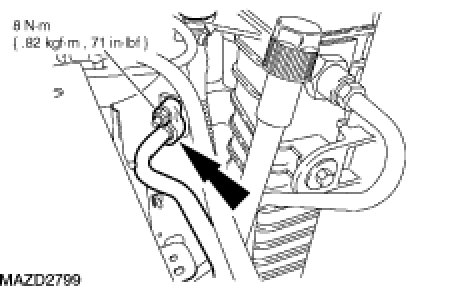 NOTE:Replacement of the suction accumulator is not required when repairing the air conditioning system except when there is physical evidence of system contamination from a failed A/C compressor or damage to the suction accumulator.