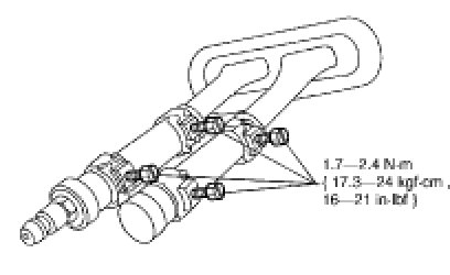 3. Connect the 101 mm (4 inch) test heater hoses with plug and adapter to the core tubes. Then connect the radiator/heater core pressure tester to the adapter.