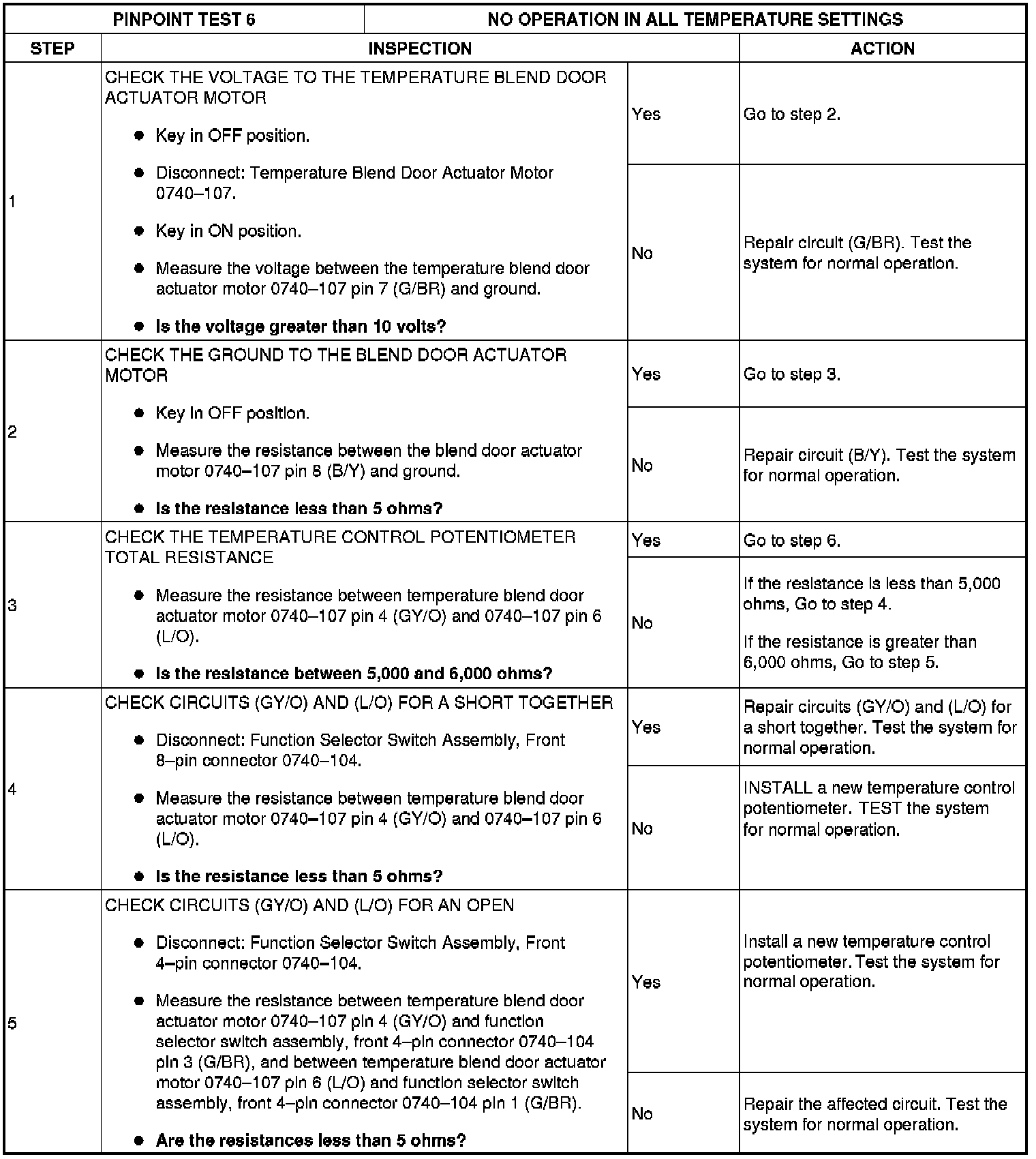 CLIMATE CONTROL PINPOINT TEST 6: NO OPERATION IN ALL TEMPERATURE SETTINGS