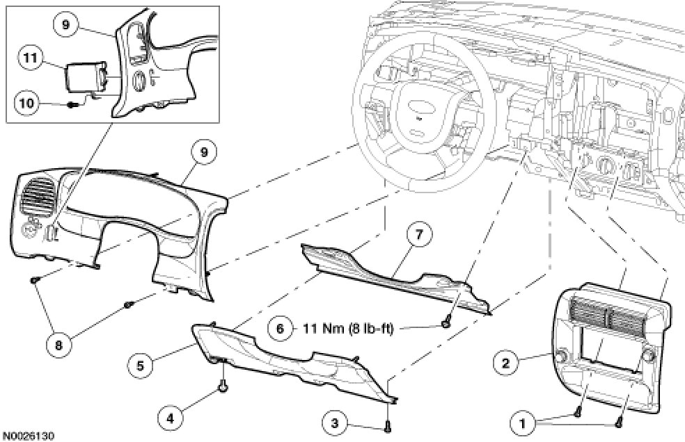 4. Remove the 2 screws and remove the instrument panel steering column cover.