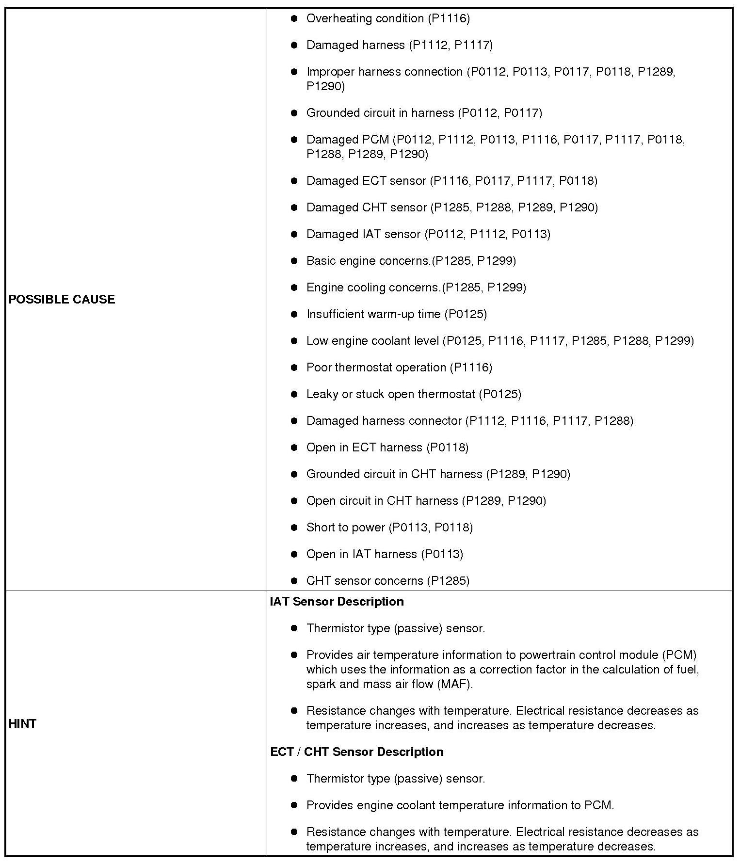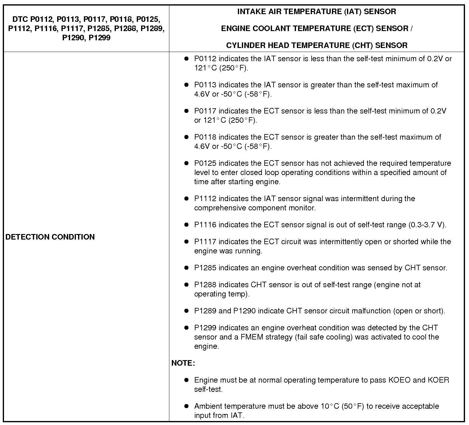 INTAKE AIR TEMPERATURE (IAT) SENSOR AND ENGINE COOLANT TEMPERATURE (ECT) / CYLINDER HEAD TEMPERATURE (CHT) SENSORDetection Condition: