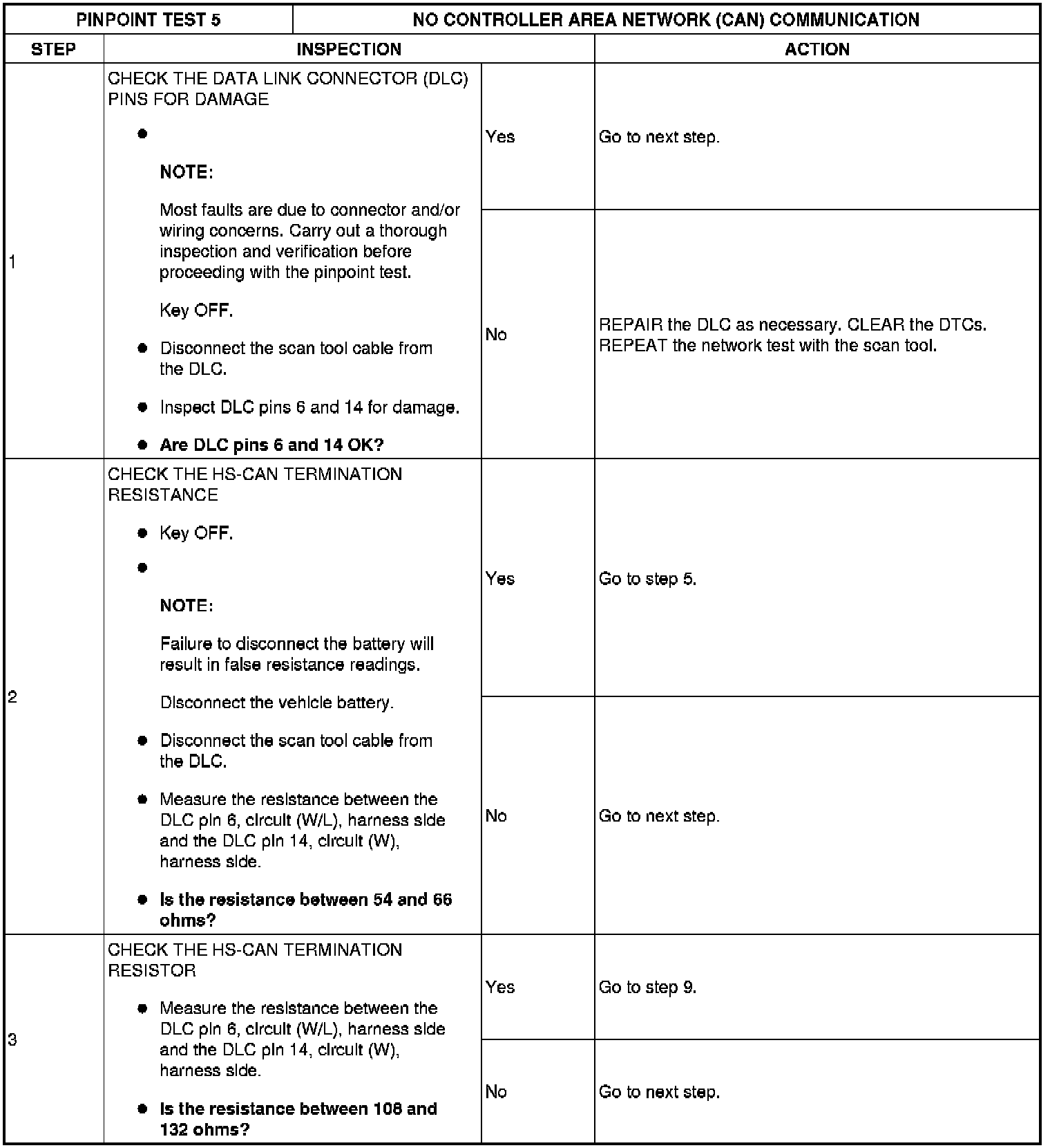 PINPOINT TEST 5: NO CONTROLLER AREA NETWORK (CAN) COMMUNICATION