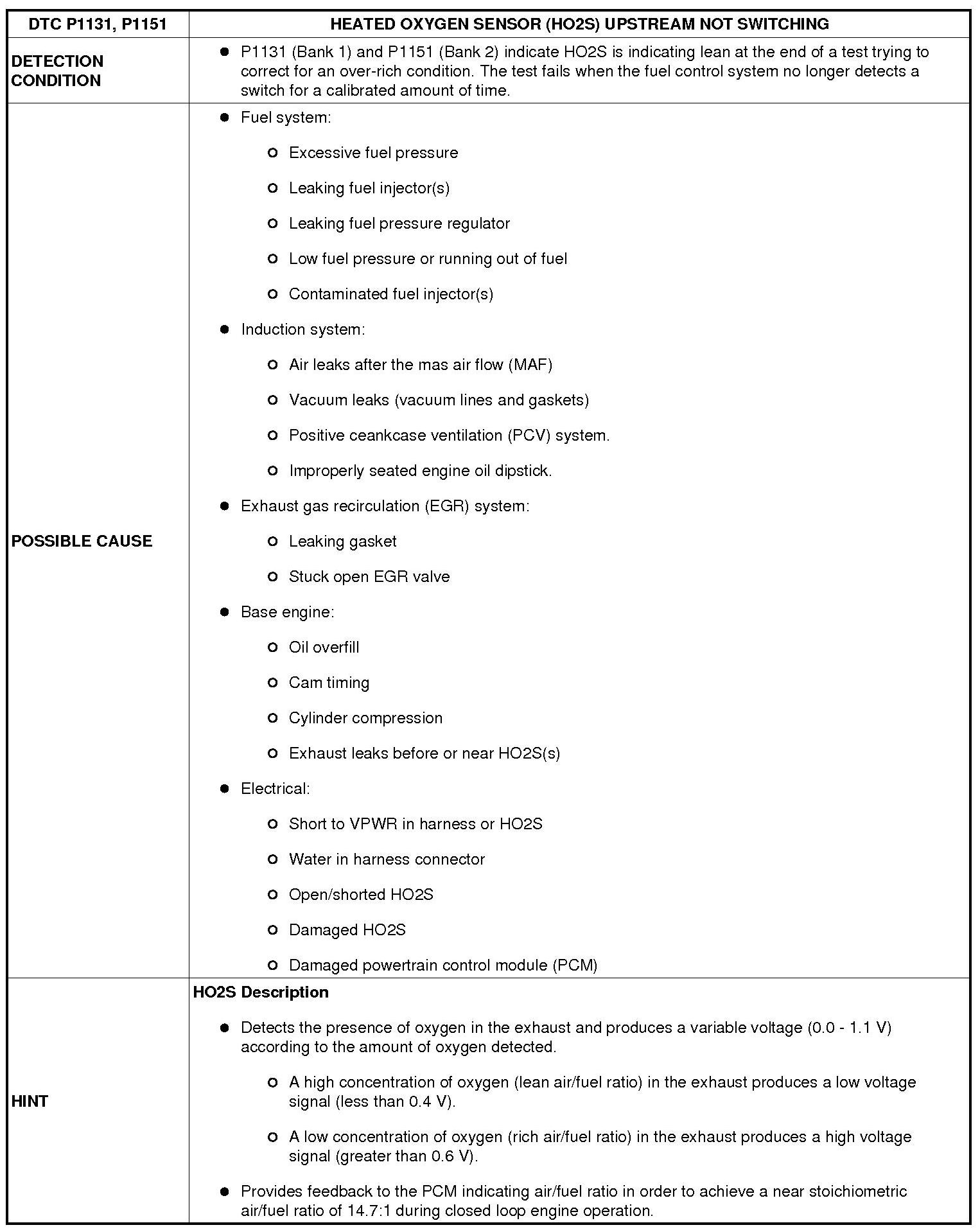DTC P1131, P1151