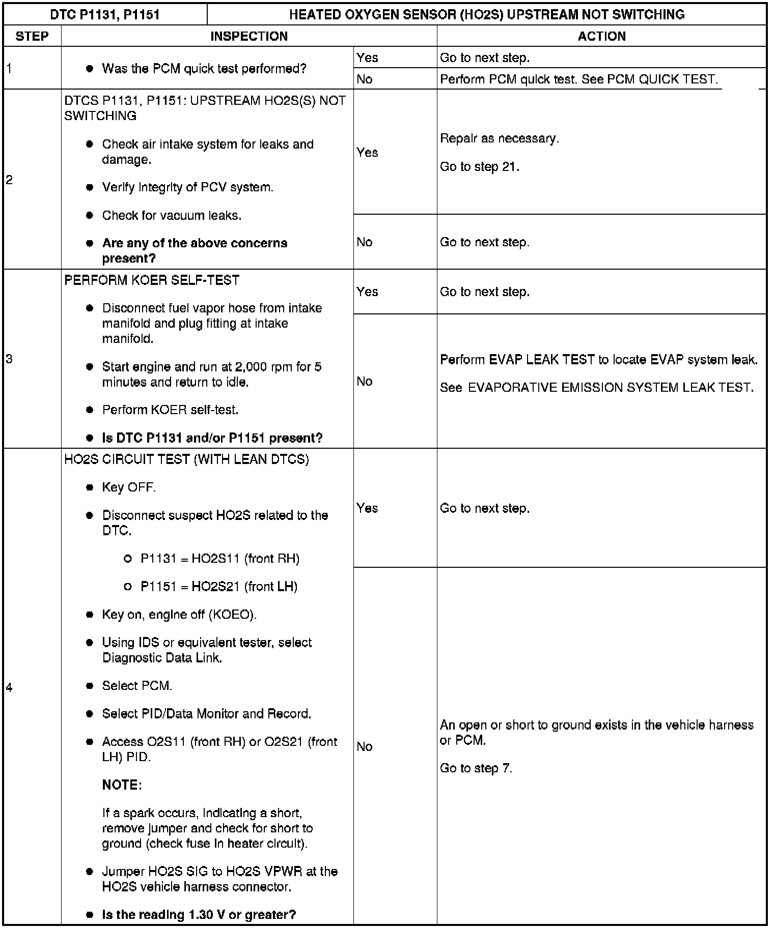 HEATED OXYGEN SENSOR (HO2S) NOT SWITCHING - UPSTREAMDetection Condition/Possible Cause (Part 1):