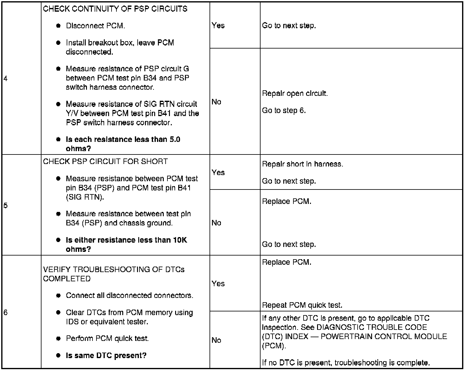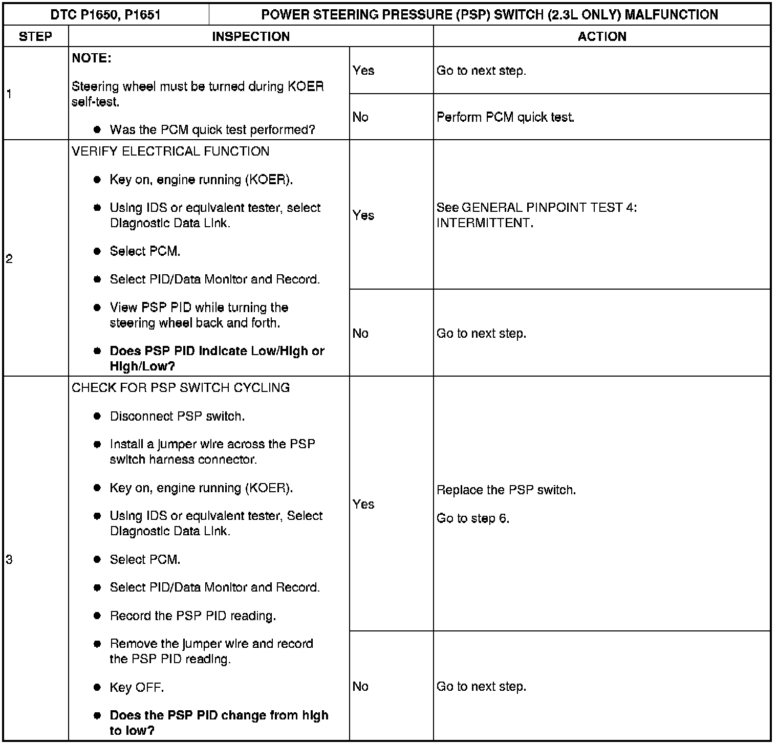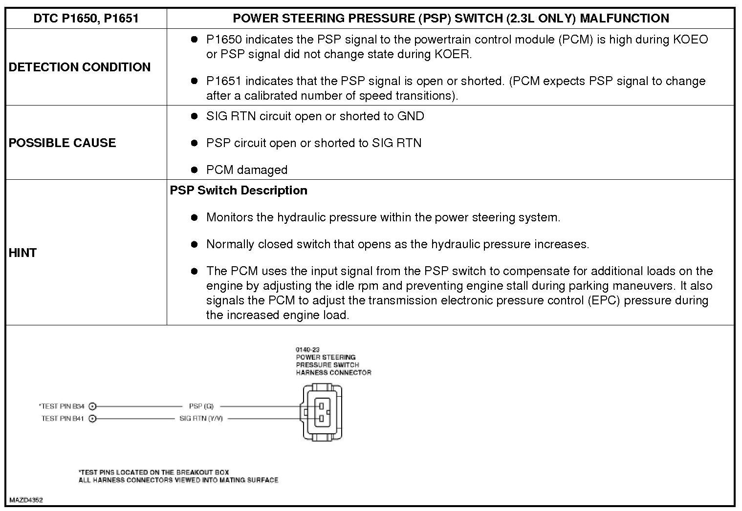 POWER STEERING PRESSURE (PSP) SWITCH (2.3L ONLY) MALFUNCTION