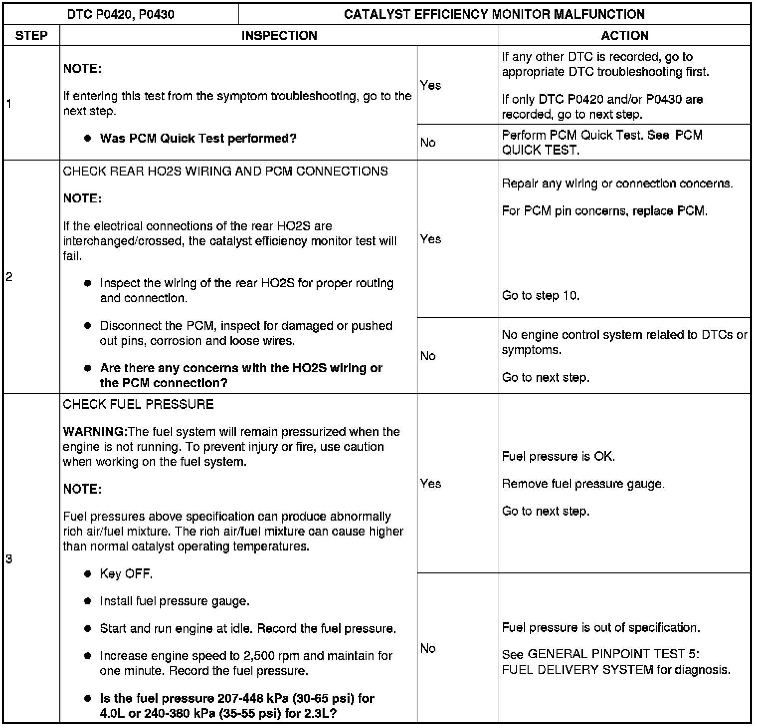 Catalyst Efficiency Monitor Malfunction