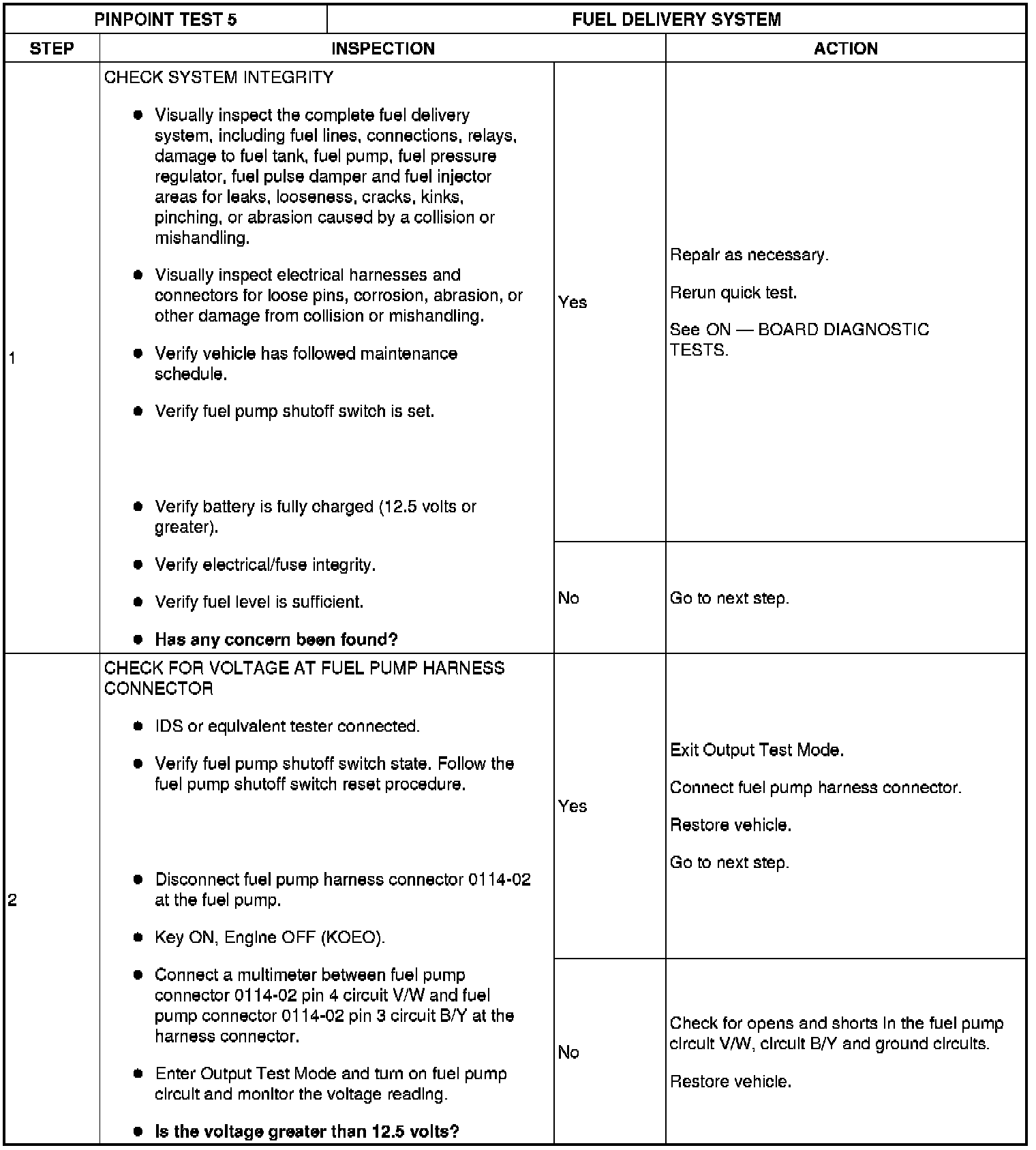 GENERAL PINPOINT TEST 5: FUEL DELIVERY SYSTEM