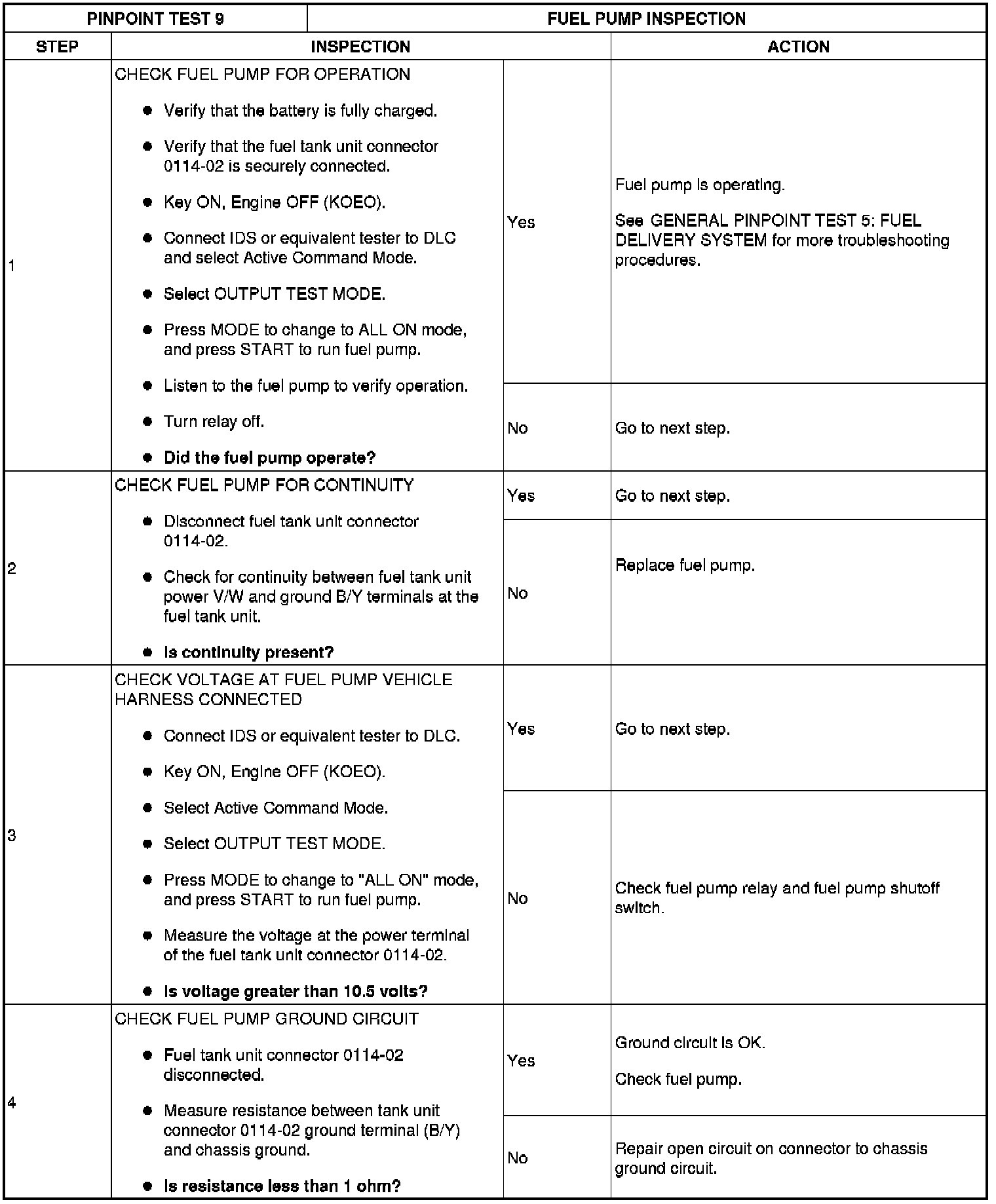 Test 9: Fuel Pump Inspection