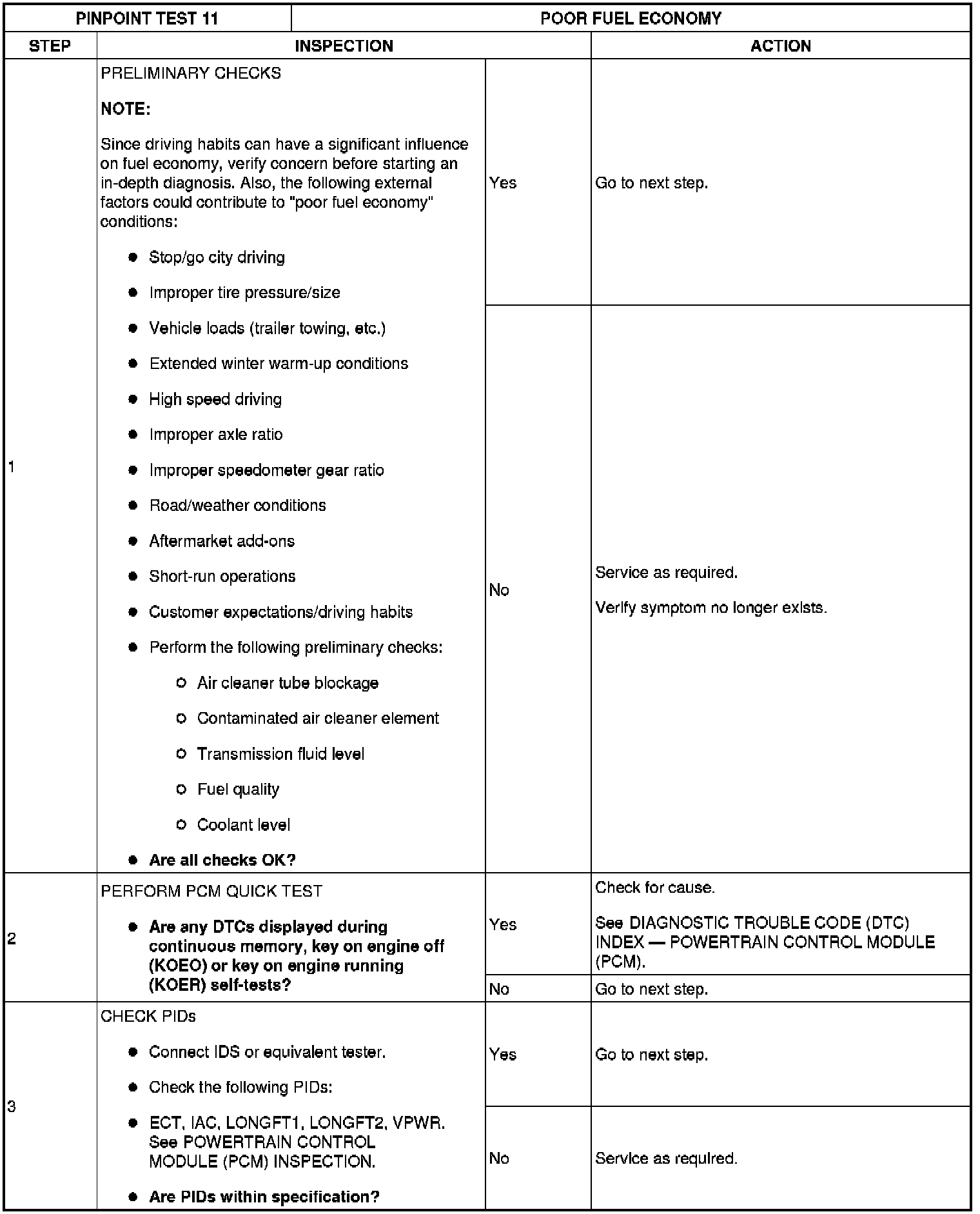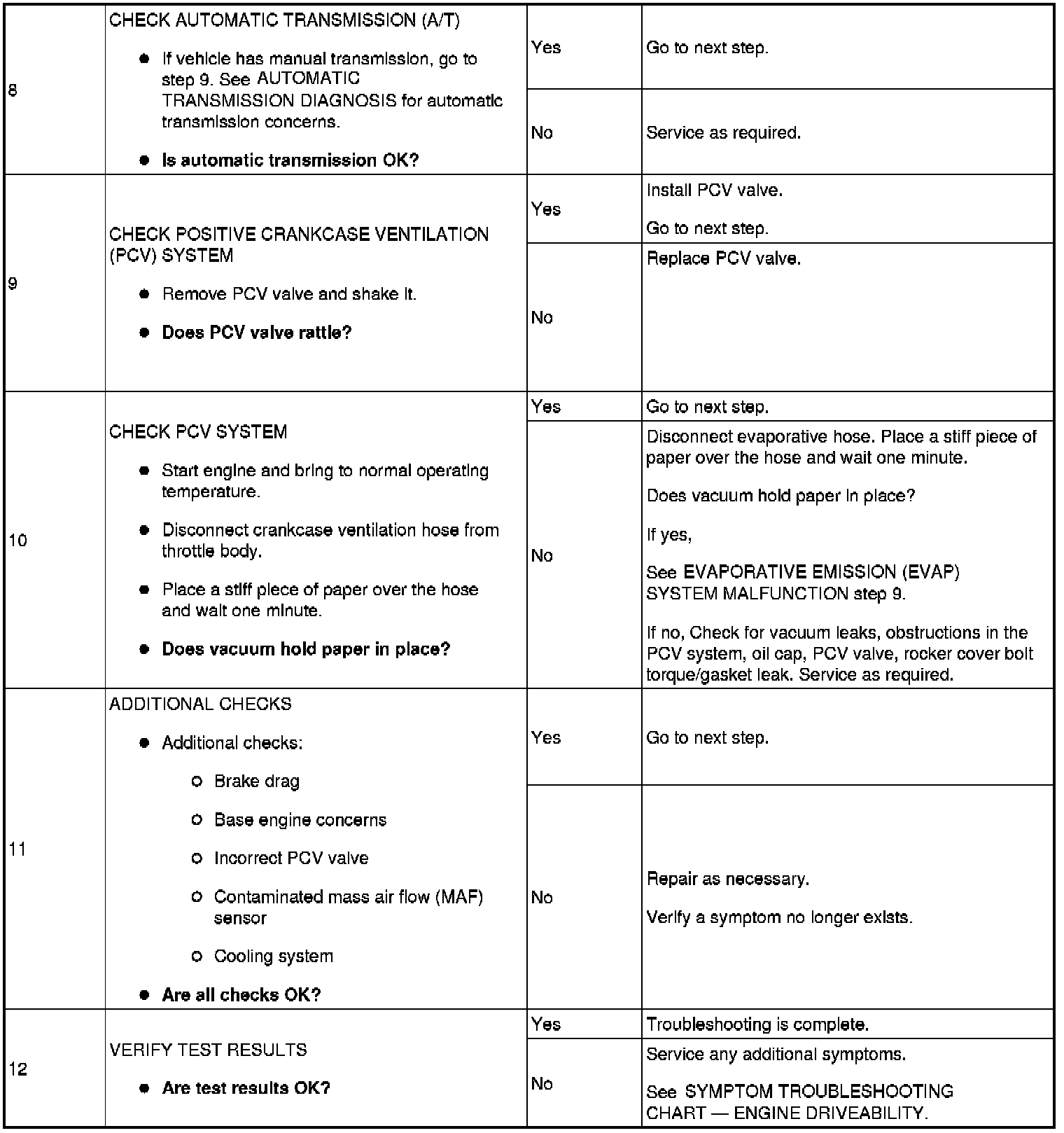 Engine Driveability Symptom Charts
