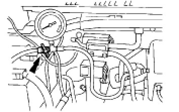 2. Open the manual valve on the fuel pressure gauge and relieve the fuel pressure. This will drain some fuel out of the system. Place fuel in a suitable container.