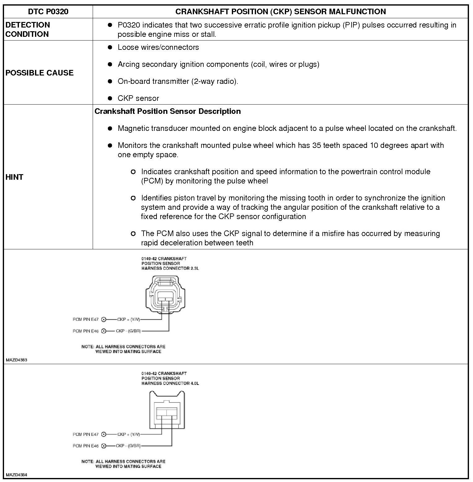 CRANKSHAFT POSITION (CKP) SENSOR MALFUNCTION