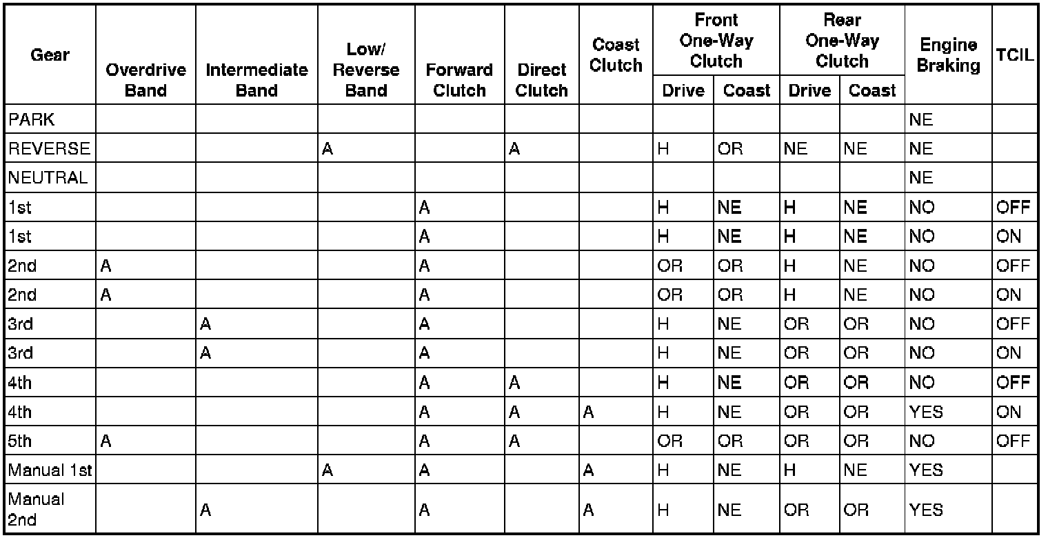 Band/Clutch Application Chart (5R44E and 5R55E)