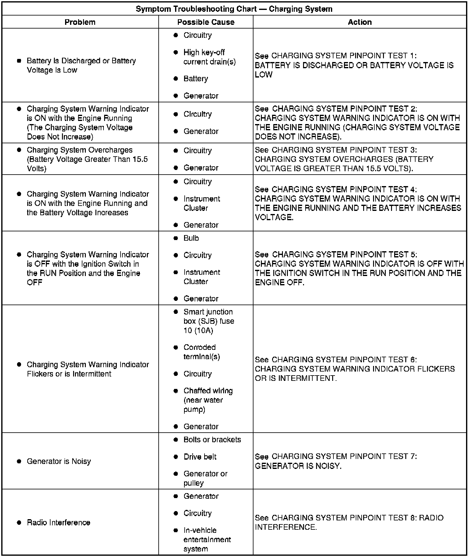 Symptom Troubleshooting Chart: