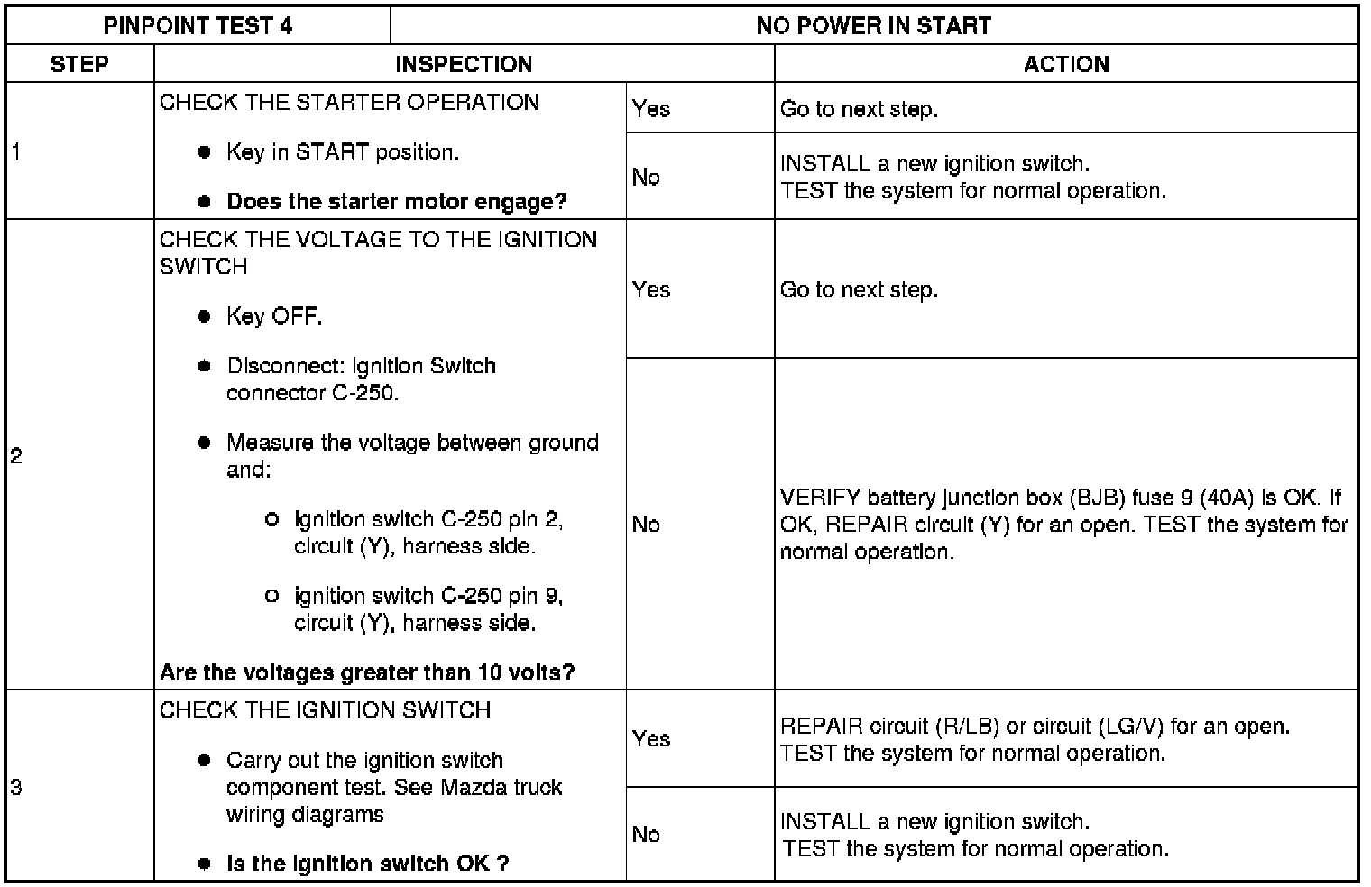PINPOINT TEST 4: NO POWER IN START