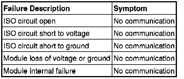The following fault chart describes the specific ISO 9141 network failures and their resulting symptom: