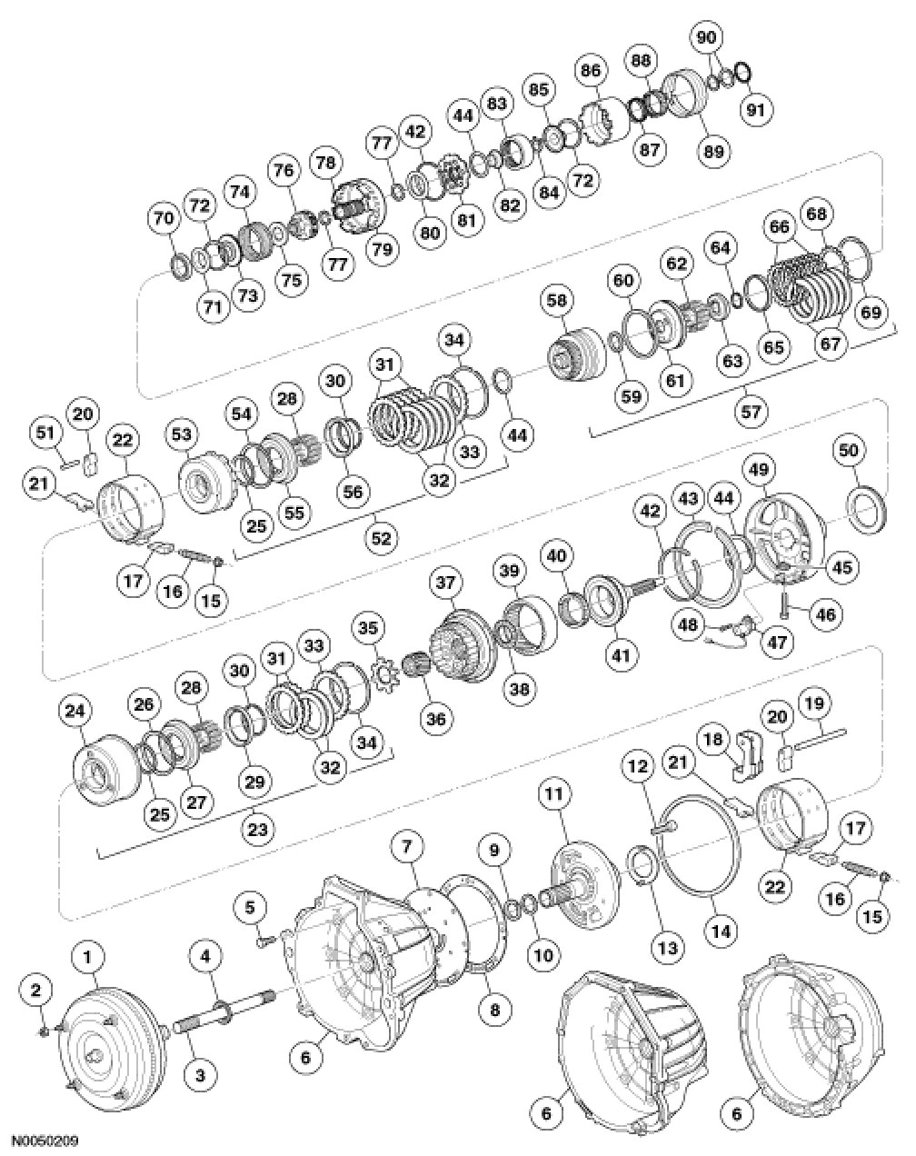 - End positioning of the input shaft is controlled by the splines in the converter turbine and the front planetary carrier.