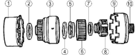 The overdrive one-way clutch is a sprag-type one-way clutch that is pressed into the center shaft.