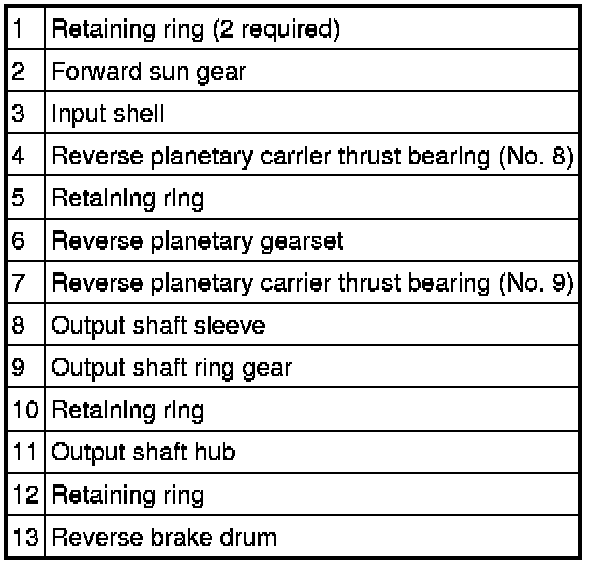 - The pinions of the reverse planetary gearset drive the output shaft ring gear and output shaft hub which is splined to the output shaft.