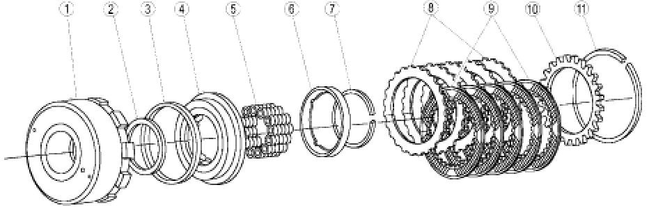 The forward clutch is a multi-disc clutch made up of steel and friction plates.