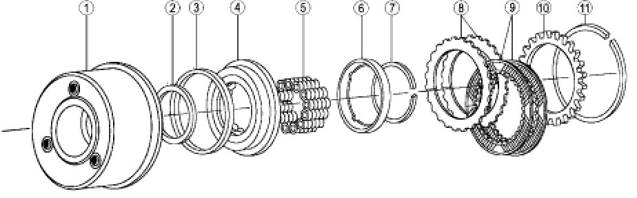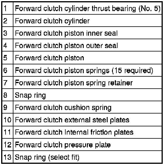 - The forward clutch is applied with hydraulic pressure and disengaged by return springs and the exhaust of the hydraulic pressure.