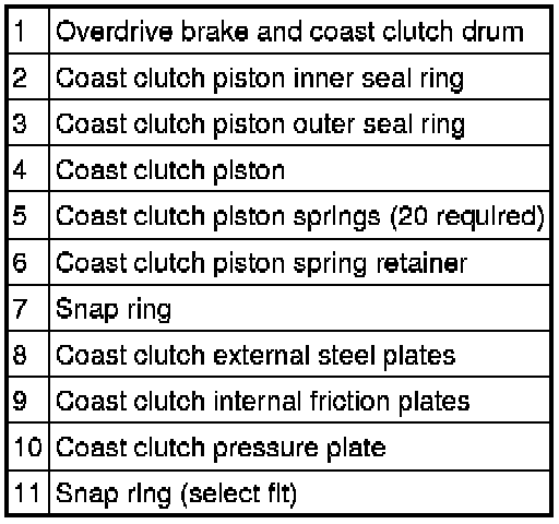 - The coast clutch is applied with hydraulic pressure and disengaged by return springs and the exhaust of the hydraulic pressure.