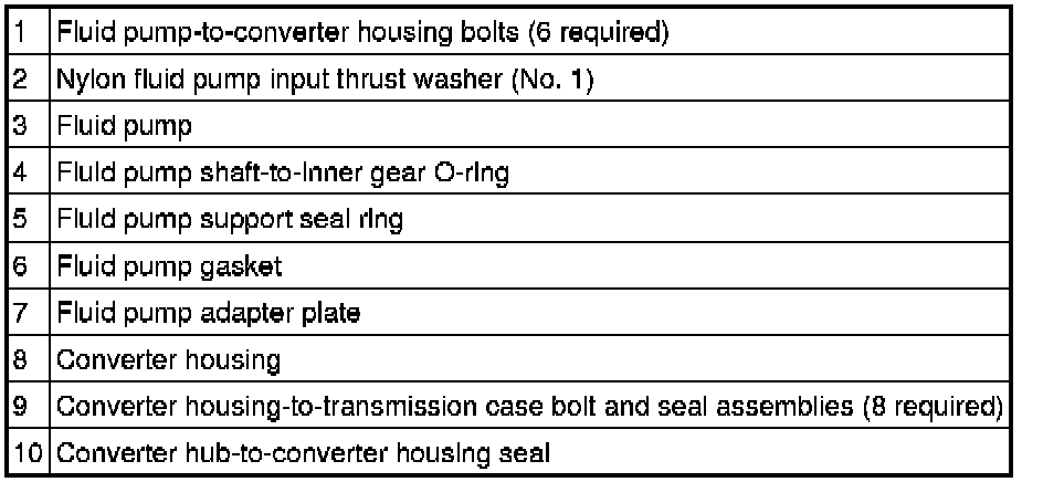 - The fluid pump is driven by the torque converter cover hub.