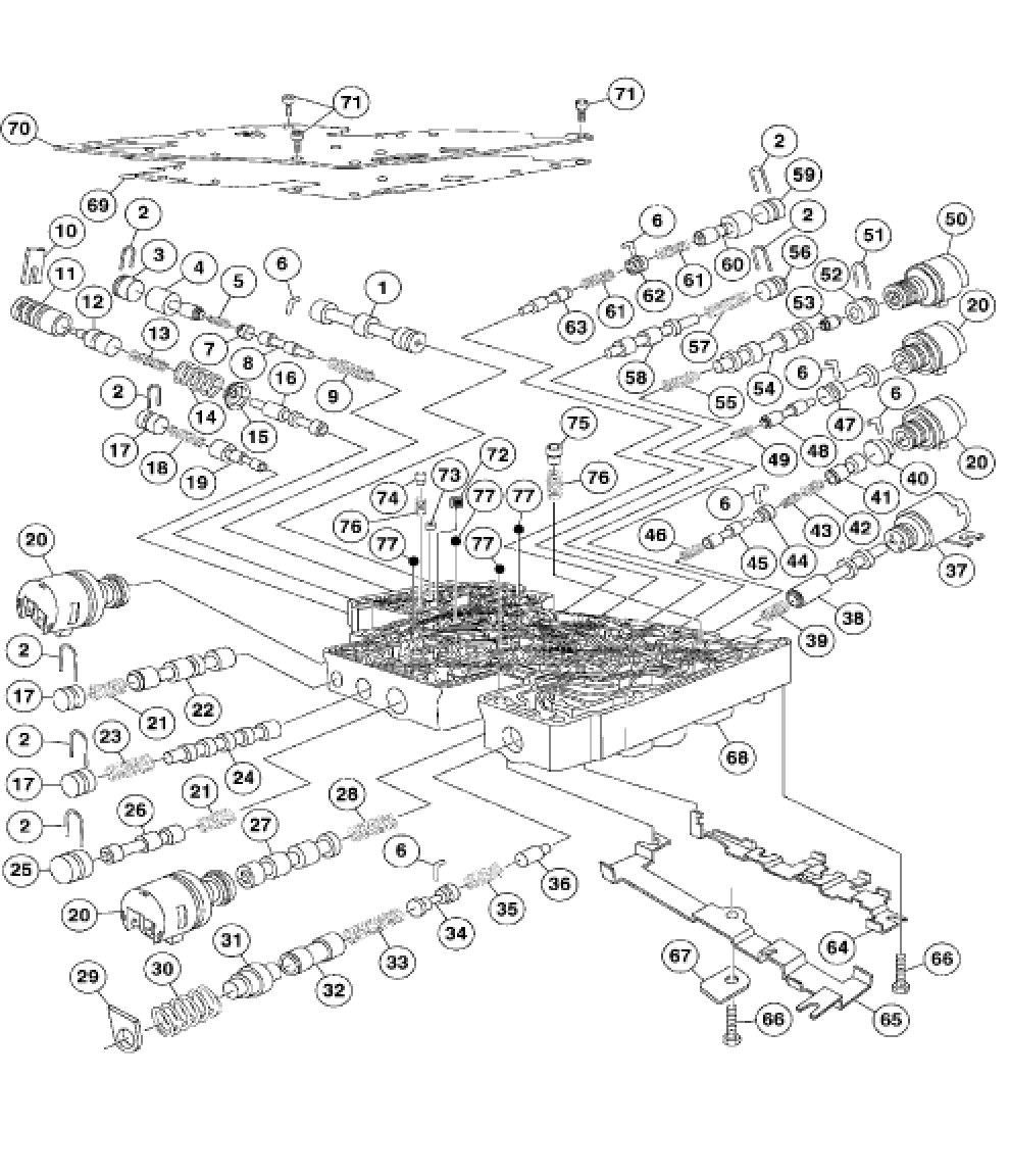 - The control valve body consists of the solenoids, the valve body assembly and the separator plate.