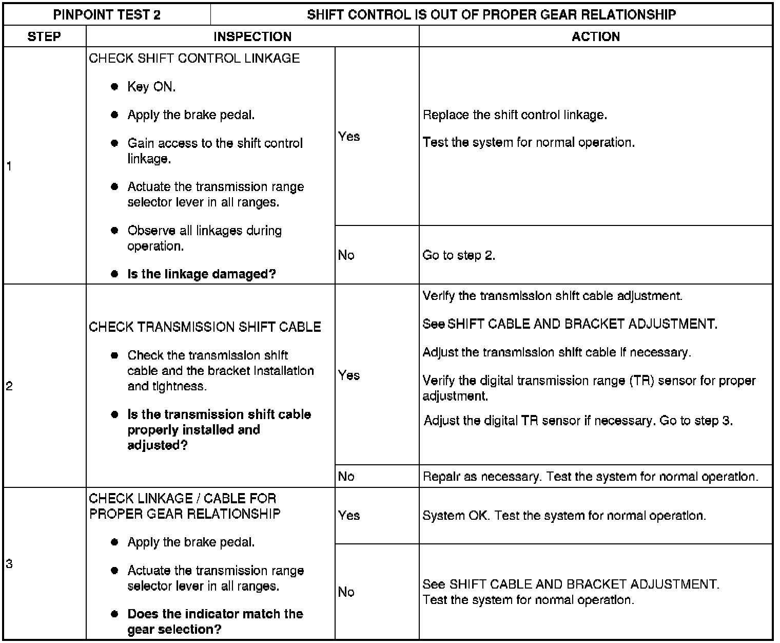 Pinpoint Test 2: Shift Control Is Out Of Proper Gear Relationship