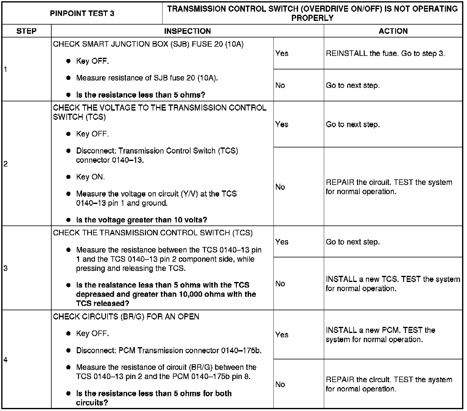 Pinpoint Test 3: The Transmission Control Switch (Over-Drive Do, On/Off) Is Not Operating Properly